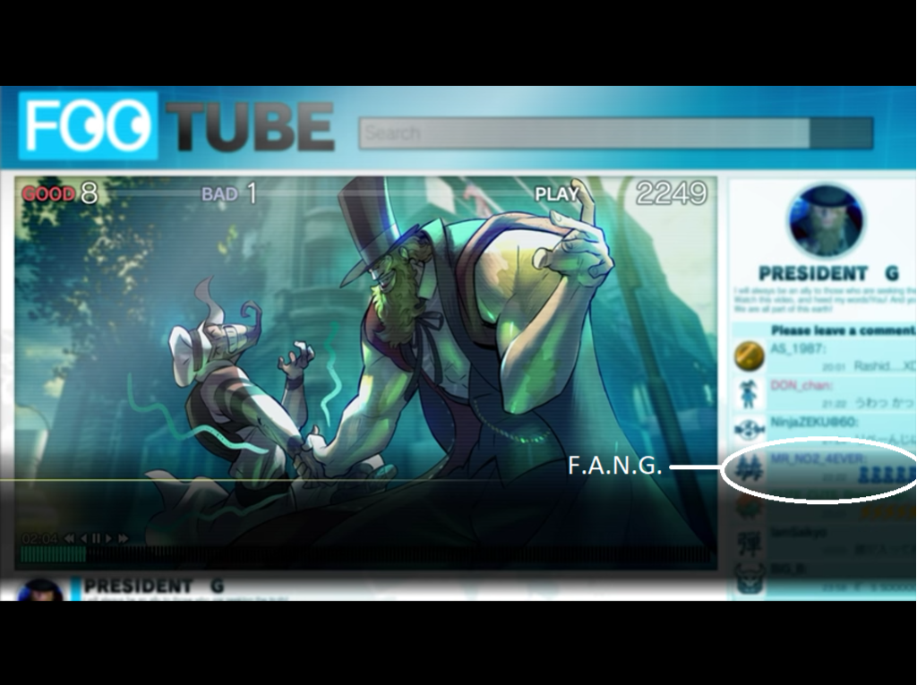 In fact, G’s story mode addresses the issue of how much influence a famous fighter has, as Rashid (and to an extent, Menat) is able to increase the viewership of his Footube channel. https://www.youtube.com/watch?v=a4GdkNgMpLo
