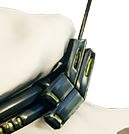 Looking over the passage, there’s a few things we can eliminate. First, Rashid doesn’t have a radio or communications device built into the scouter. He doesn’t need it. He carries a smartphone and a laptop around in order to communicate with people. Second, he doesn’t have or use a weapon. Everything else, however, is fair game.