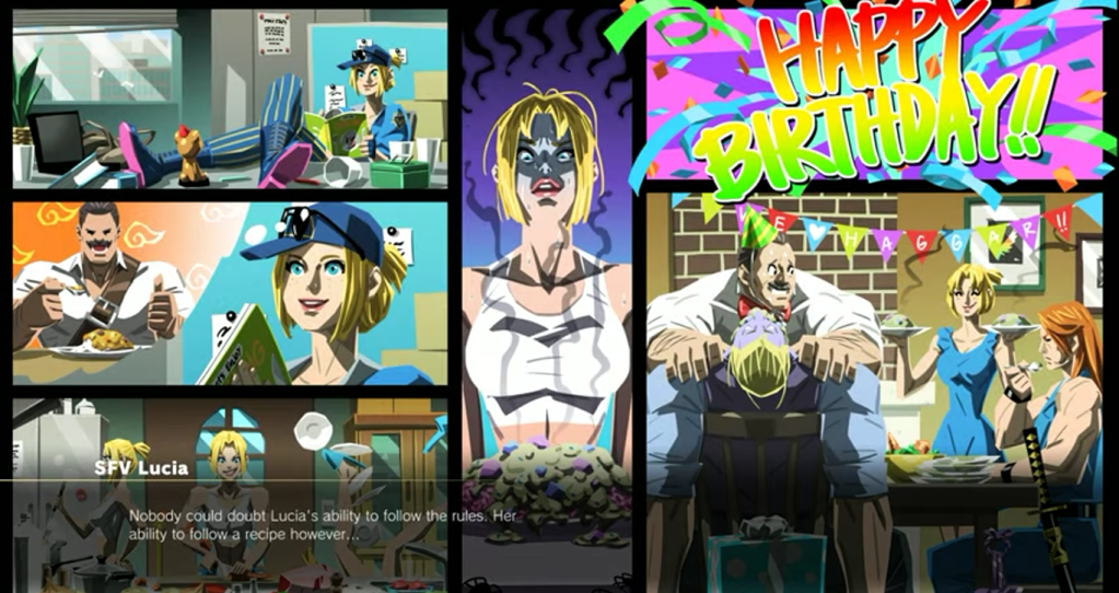 In Lucia’s Street Fighter 5 Story Mode ending, it’s outright stated that Lucia can not follow a recipe, and overtly shown that anything she cooks is literally poisonous. Yet, to impress her friends, she cheerfully serves everyone her inedible food anyway, envenoming Cody and marking both Haggar and Carlos as her next victims.