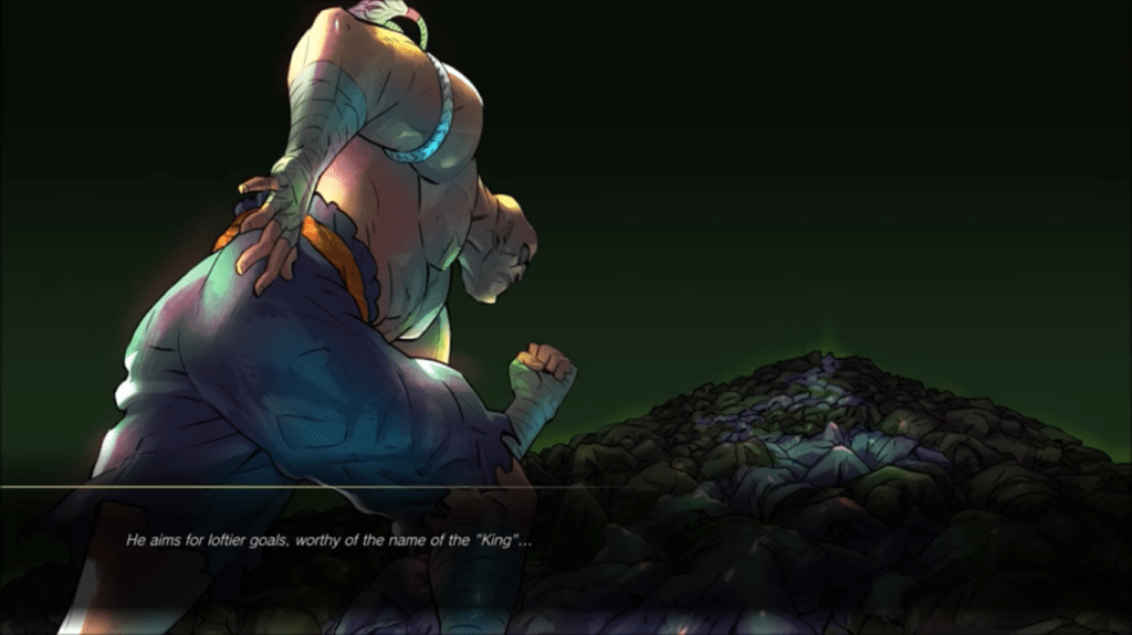 Sagat wants to have his cake and eat it too. He wants to be called “King” while at the same time working hard to earn the title. He wants to live up to the moniker, and will do whatever it takes to be worthy of the name he’s given himself. It is his identity. He is arrogant and humble at the same time, and the conflict between these two opposite forces drives him towards his goals and towards the path of the Satsui no Hado.