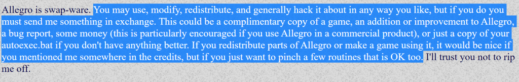 Interestingly, though, Allegro was not originally supposed to be freeware, but swapware.