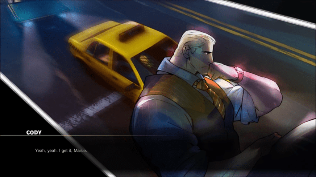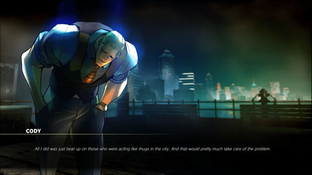 Although Cody states in his own ending that utilizing Zeku’s assistance, with Zeku himself working from the shadows much like G, would make him “no better than the people [he’s] fighting against”, it appears that by the time of Lucia’s story mode, Cody has embraced the idea of having someone watching out for him in secret.