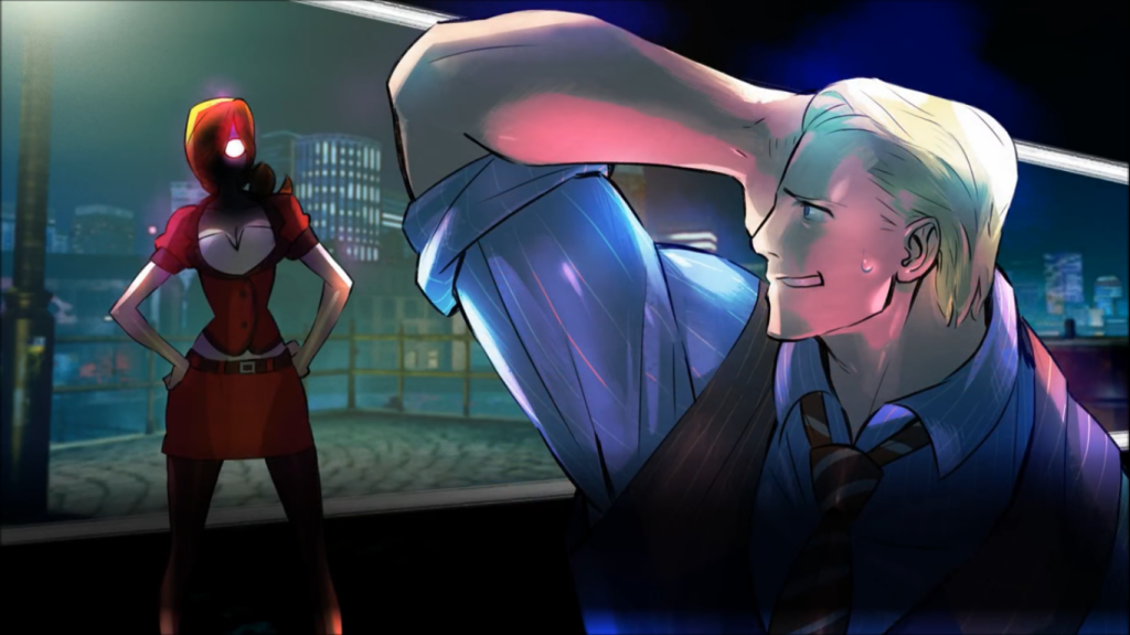In the few scenes where we see Miss Marlowe, her face is obscured by shadows or objects like her own red hair or Cody’s arm. Why go through the trouble of keeping Miss Marlowe’s face hidden from view if she is only supposed to be a background character? Is there something that Capcom doesn’t want to reveal yet that would blow the lid off of Street Fighter’s canon?