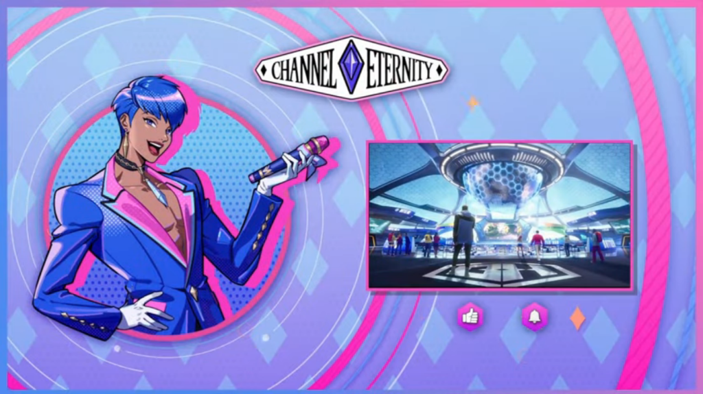 Eternity is something of an enigma at this stage. Outwardly, they’re very friendly and love being the center of attention while showing off the features of the game. The most obvious thing about Eternity is their fashion sense, both masculine and feminine at the same time and making heavy use of pink and blue. This is a character who is somewhere on the LGBTQ+ spectrum, and the pink and blue motif seems to imply that Eternity is either non-binary or bisexual (the bisexual flag utilizes the same blue and pink shades as Eternity’s outfit).