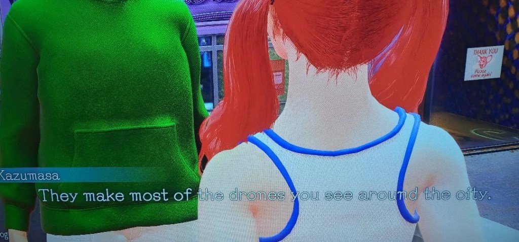 “Isn’t that enough proof JP works in robotics?” Certainly! However, these refrigerators are rather crude compared to the more sophisticated airborne drones we’ll see in Metro City. “Yeah, but Nayshall’s a third-world country. You can tell by the scenery. The materials to build a sophisticated refrigerator would be lacking in a place like that!” Yes, but that also proves my point – someone else built those refrigerators. It wouldn’t be either JP or G; neither would dream of building something so primitive considering both have money to shell out on more advanced technology. Even if JP owns the SiRN Building and the drones within it, which is very likely, G owns the Qs and an entire space station. In other words, it doesn’t matter whose drones those belong to – either one is capable of building them.