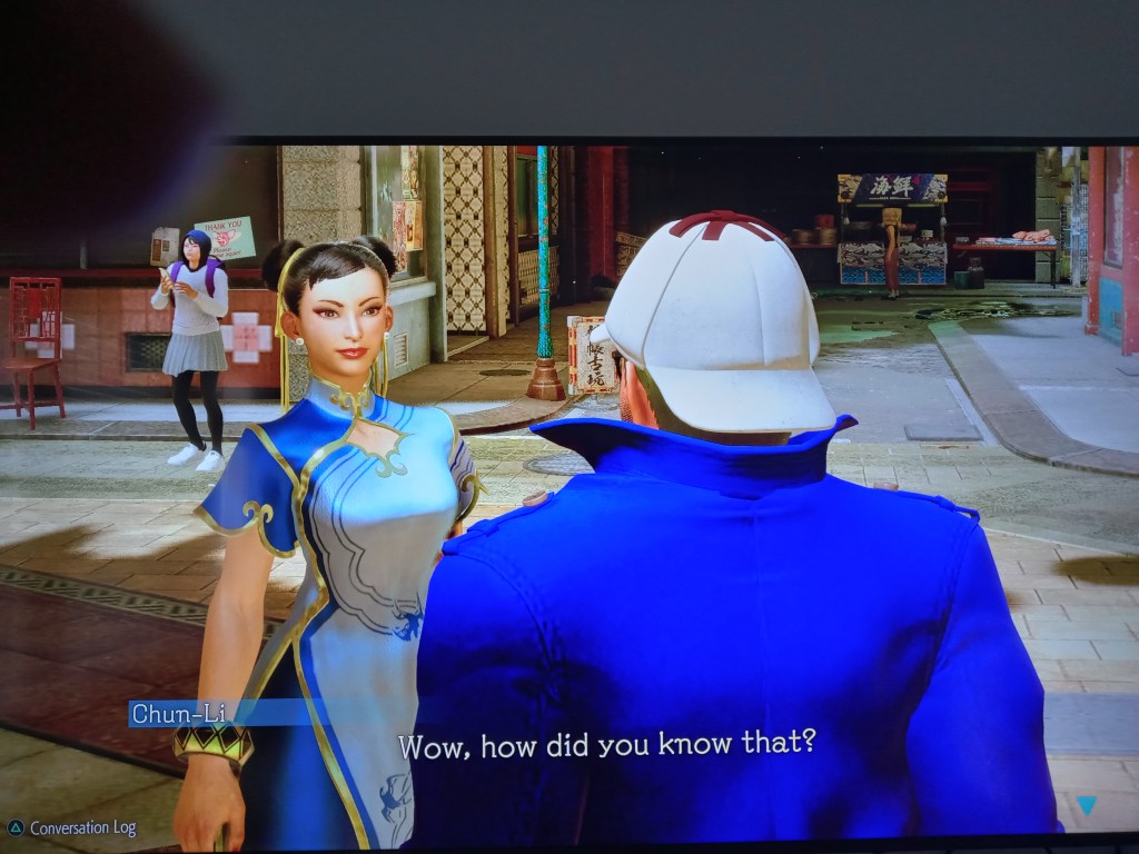 Many fighters who mimic the styles of others can do it perfectly. However, there’s one thing that sets you apart: you have complete free will. You don’t exist to fight. You’re learning from everything and everyone to find out what strength is, whether it’s martial arts, vendors, part-time jobs, or regular people. In fact, you have a lot of knowledge about the people you meet. A conversation you have with Chun-Li on her being a civil servant shows that you know enough about her to freak her out (if you choose the right option).