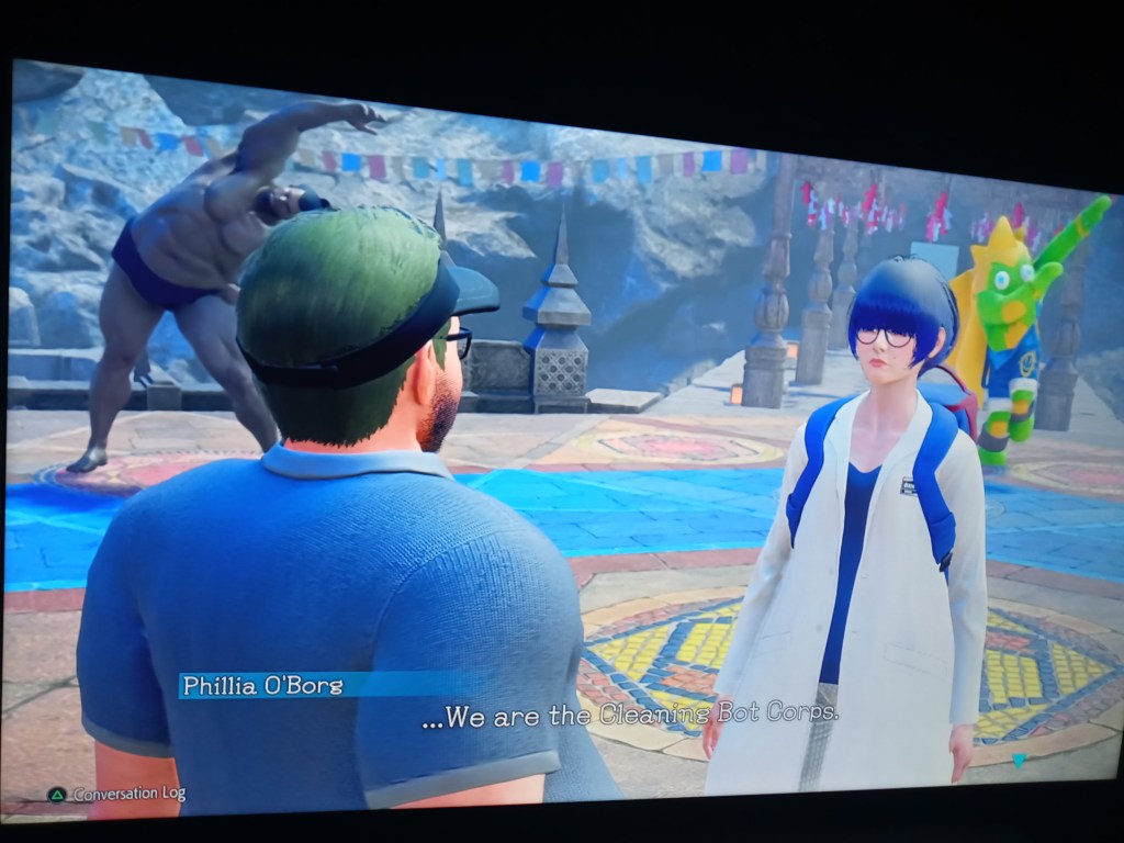 “Well, so do the drones, Hyoombas, and refrigerators,” you say. Well, yes, but as weird as it is to see sentient appliances travel by train, it at least makes sense that they take it because it helps them move from place to place without draining battery power. The Copy Fighters, on the other hand, seem to take it strictly for leisure. Also, while there is one specific refrigerator, a single Vagrant Fridge, that seems to have a mind of its own and joins the Suval’Hal Arena Throwdown to face your avatar in battle, for the most part, it’s clear that bots like that are controlled by someone else, if the many incarnations of Phillia O’Borg are any indication.